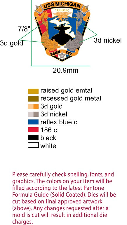 NAMETAG MEDALLION USS MICHIGAN SSBGN 727 BLUE